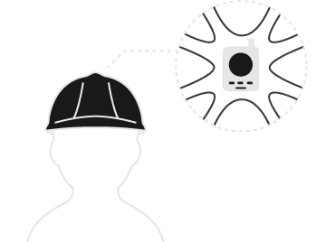 付属の専用ケースで、ヘルメットの内側に簡単に取り付け可能。ヘルメットがスピーカーのように反響するので、騒音下で声がクリアに聞こえます。
